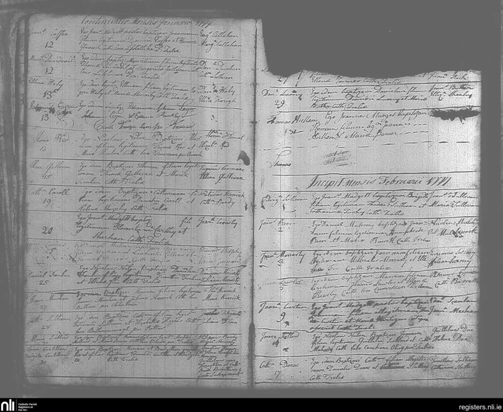 Tralee; County of Kerry; Diocese of Kerry. Baptisms, Jan. 1777 to Feb. 1777