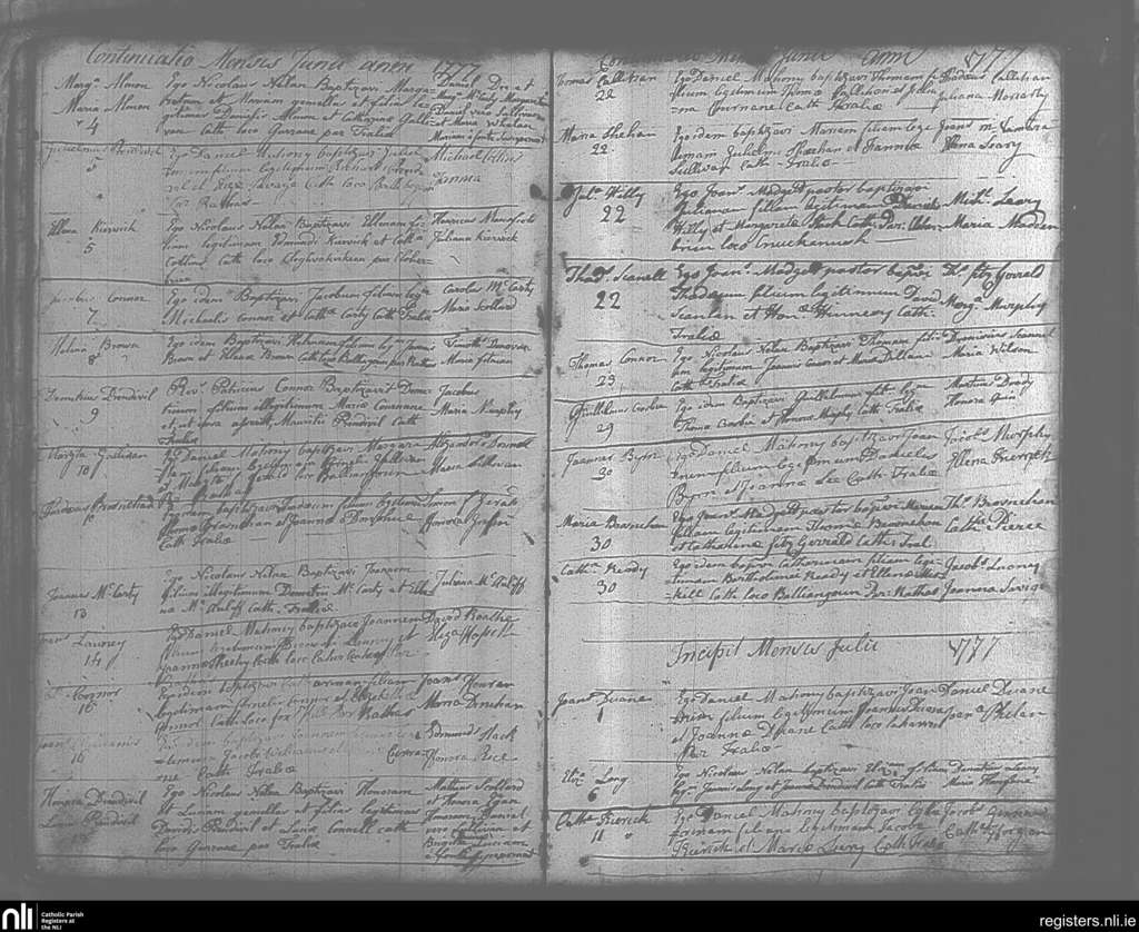 Tralee; County of Kerry; Diocese of Kerry. Baptisms, June 1777 to July 1777