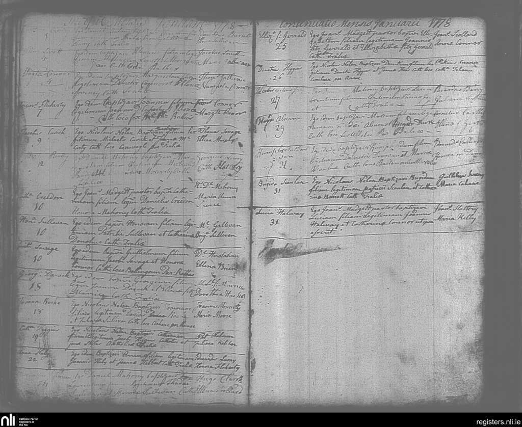 Tralee; County of Kerry; Diocese of Kerry. Baptisms, Jan. 1778