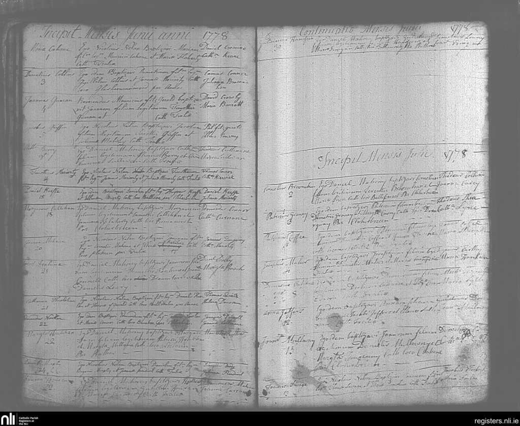 Tralee; County of Kerry; Diocese of Kerry. Baptisms, June 1778 to July 1778