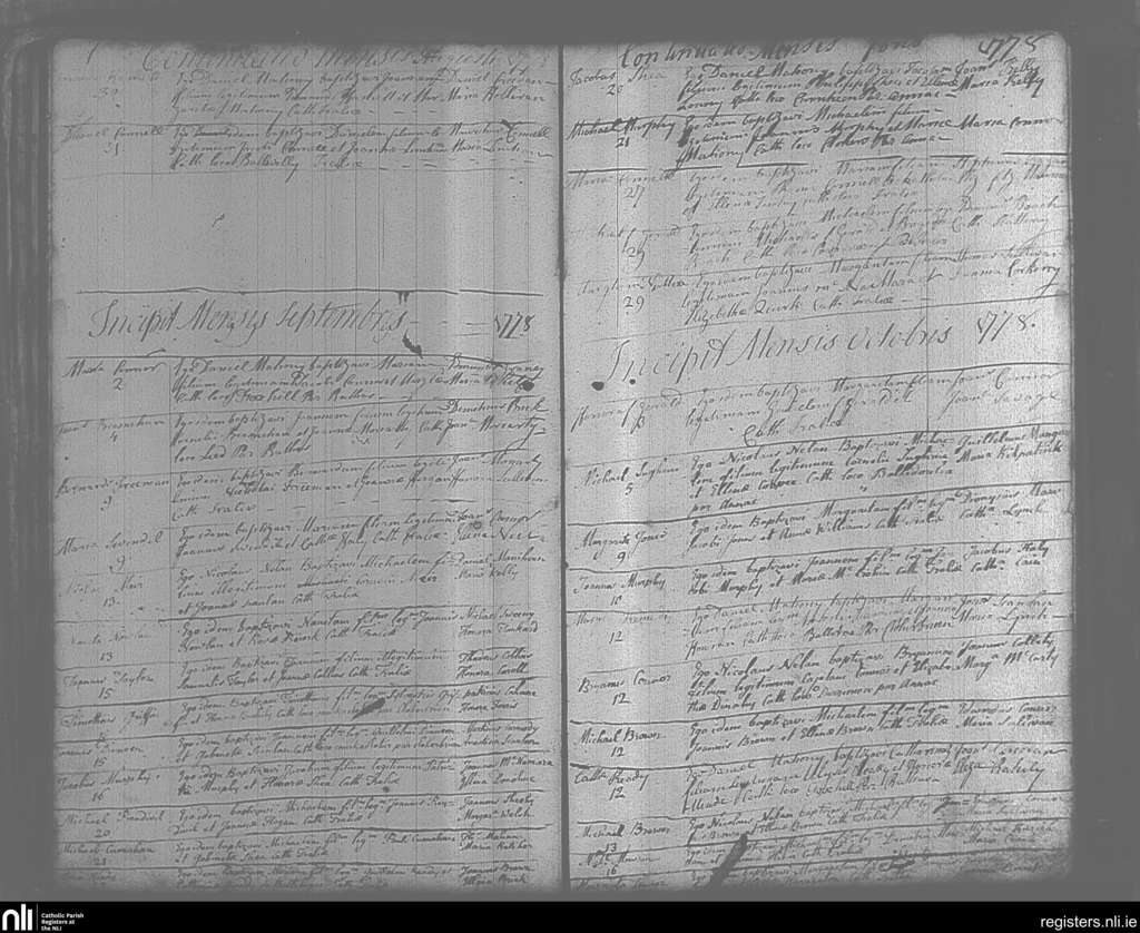 Tralee; County of Kerry; Diocese of Kerry. Baptisms, Aug. 1778 to Oct. 1778