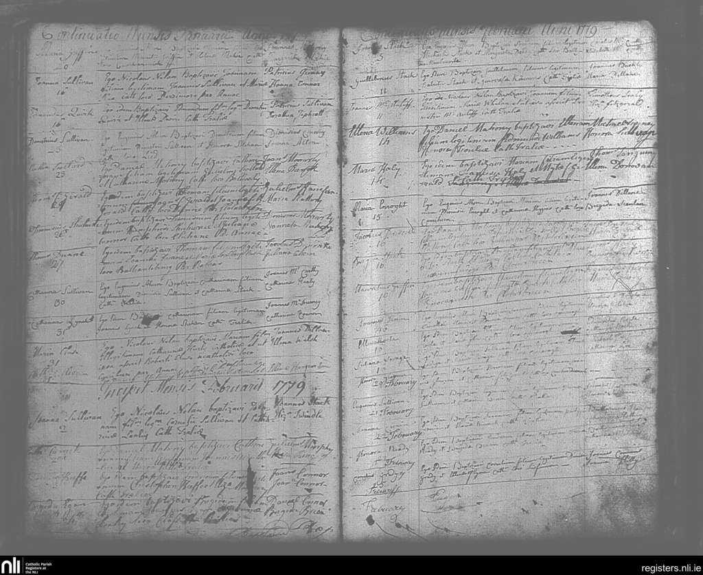Tralee; County of Kerry; Diocese of Kerry. Baptisms, Jan. 1779 to Feb. 1779