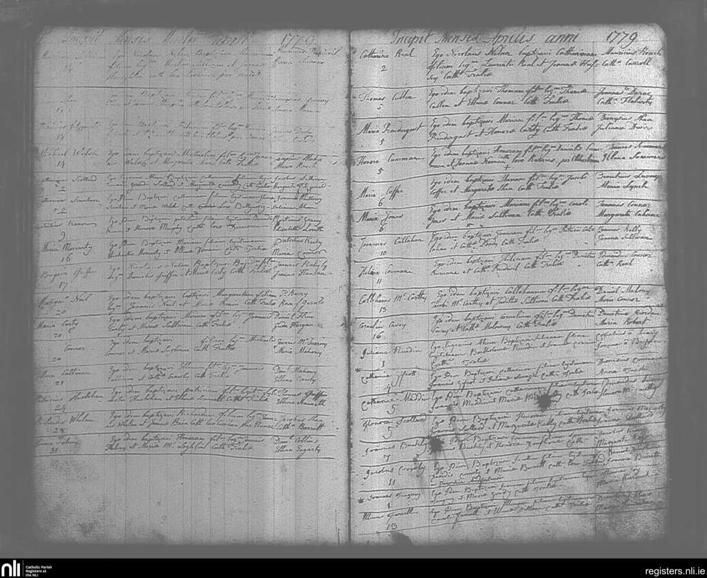 Tralee; County of Kerry; Diocese of Kerry. Baptisms, Mar. 1779 to Apr. 1779