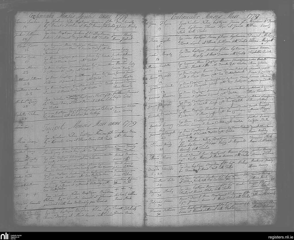 Tralee; County of Kerry; Diocese of Kerry. Baptisms, Apr. 1779 to May 1779