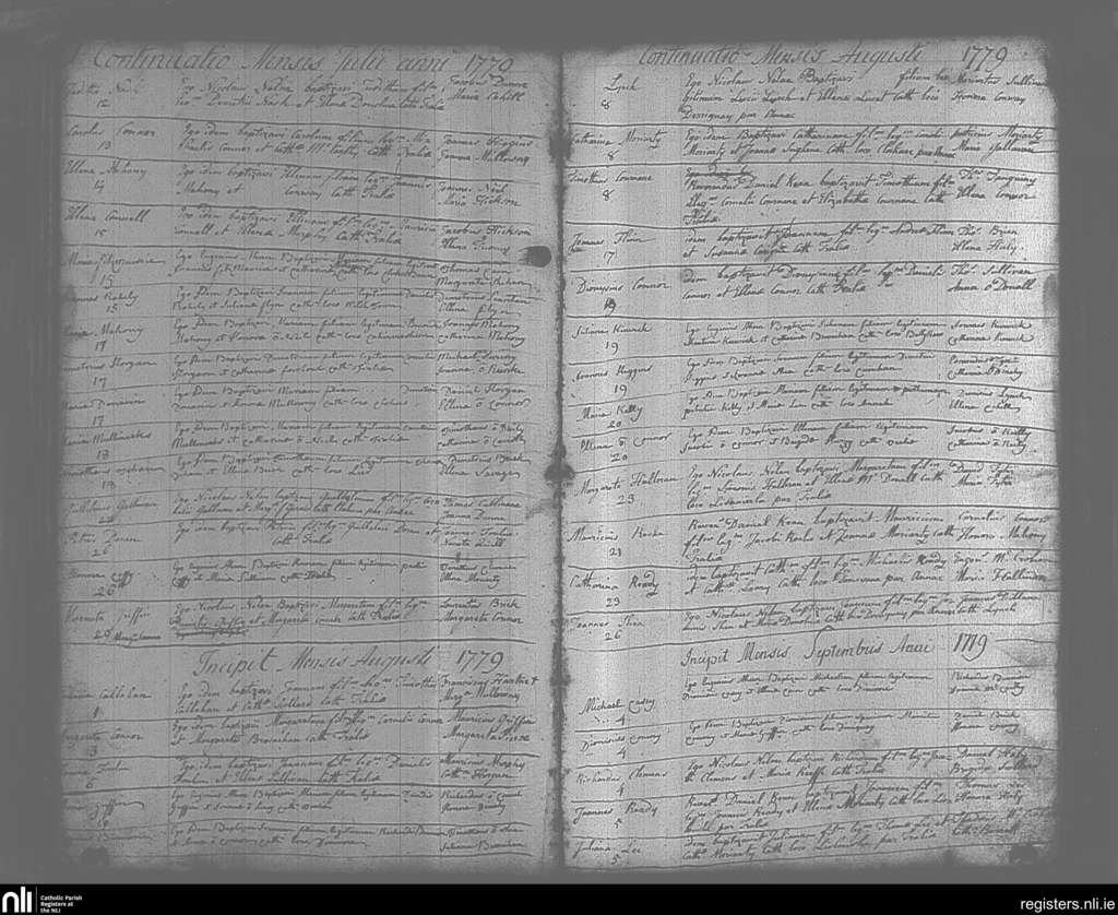 Tralee; County of Kerry; Diocese of Kerry. Baptisms, July 1779 to Sep. 1779