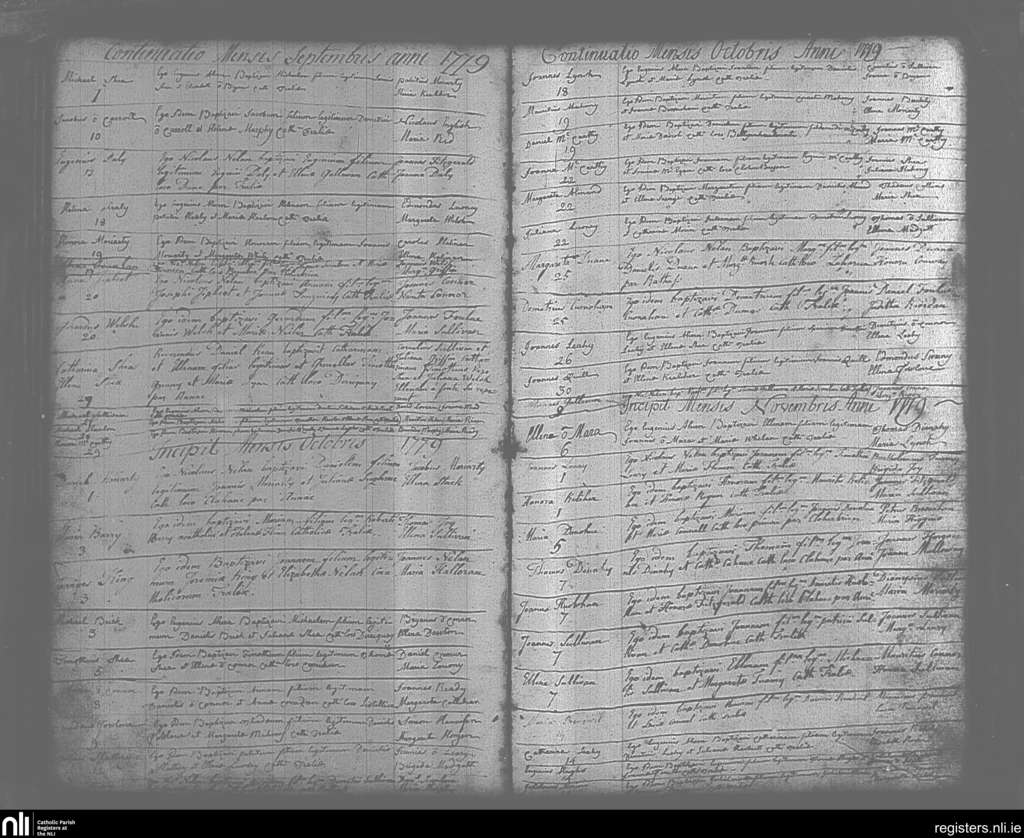 Tralee; County of Kerry; Diocese of Kerry. Baptisms, Sep. 1779 to Nov. 1779