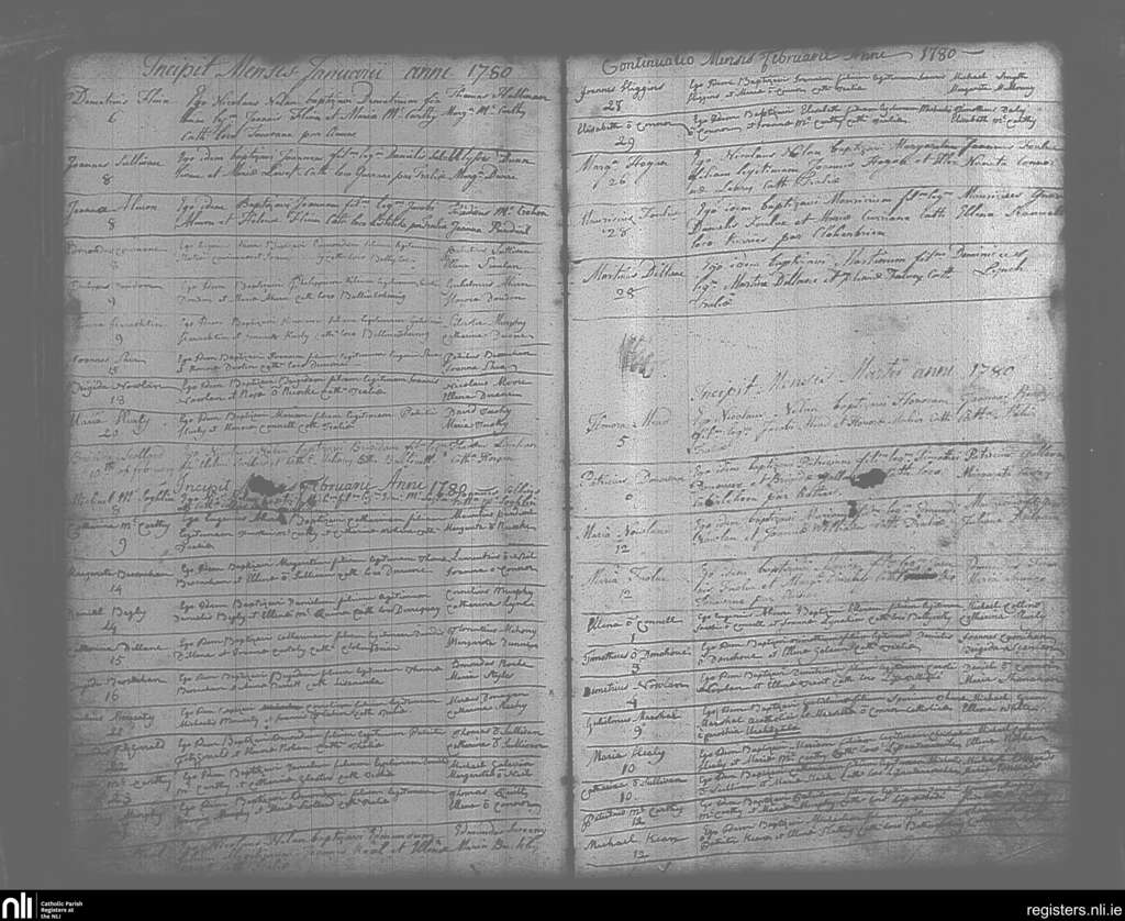 Tralee; County of Kerry; Diocese of Kerry. Baptisms, Jan. 1780 to Mar. 1780