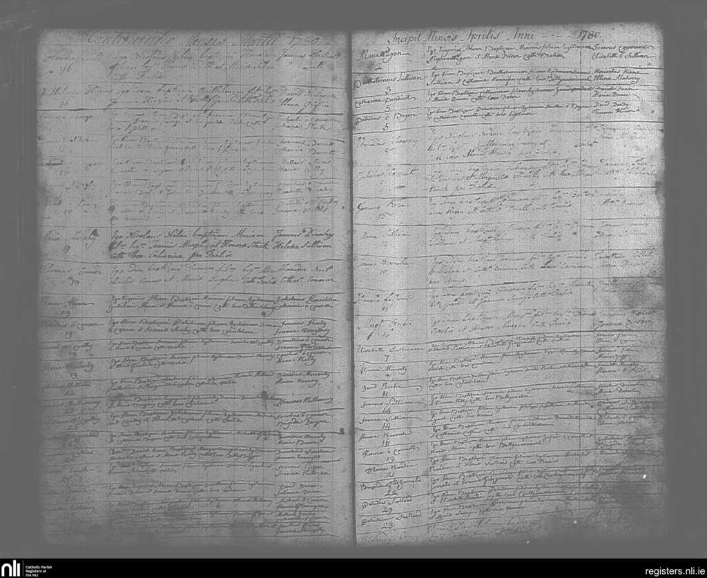 Tralee; County of Kerry; Diocese of Kerry. Baptisms, Mar. 1780 to Apr. 1780