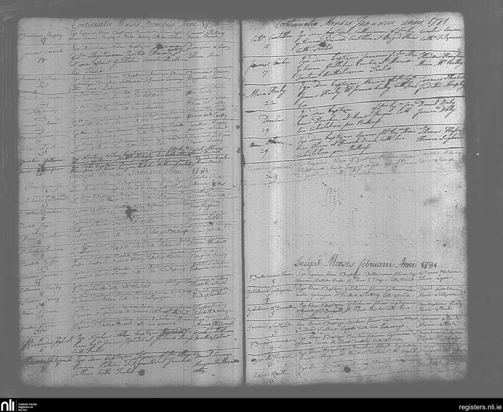 Tralee; County of Kerry; Diocese of Kerry. Baptisms, Dec. 1780 to Feb. 1781