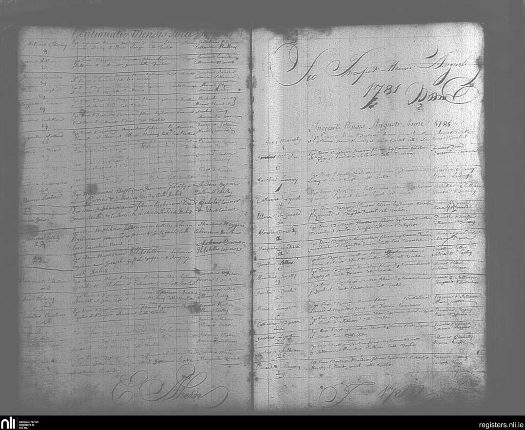 Tralee; County of Kerry; Diocese of Kerry. Baptisms, July 1781 to Aug. 1781