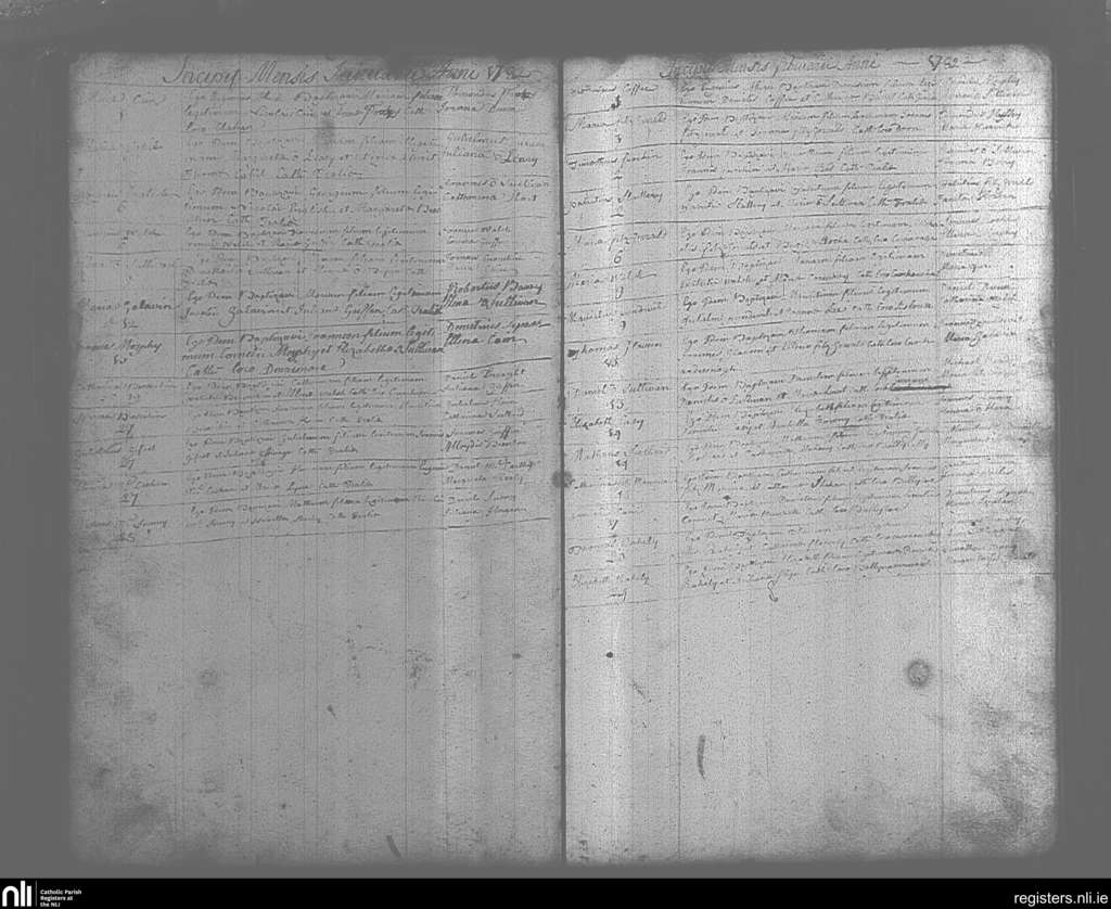 Tralee; County of Kerry; Diocese of Kerry. Baptisms, Jan. 1782 to Feb. 1782