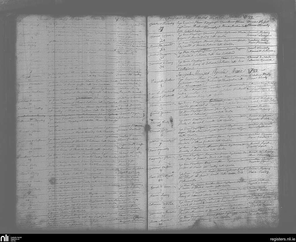 Tralee; County of Kerry; Diocese of Kerry. Baptisms, Mar. 1782 to Apr. 1782