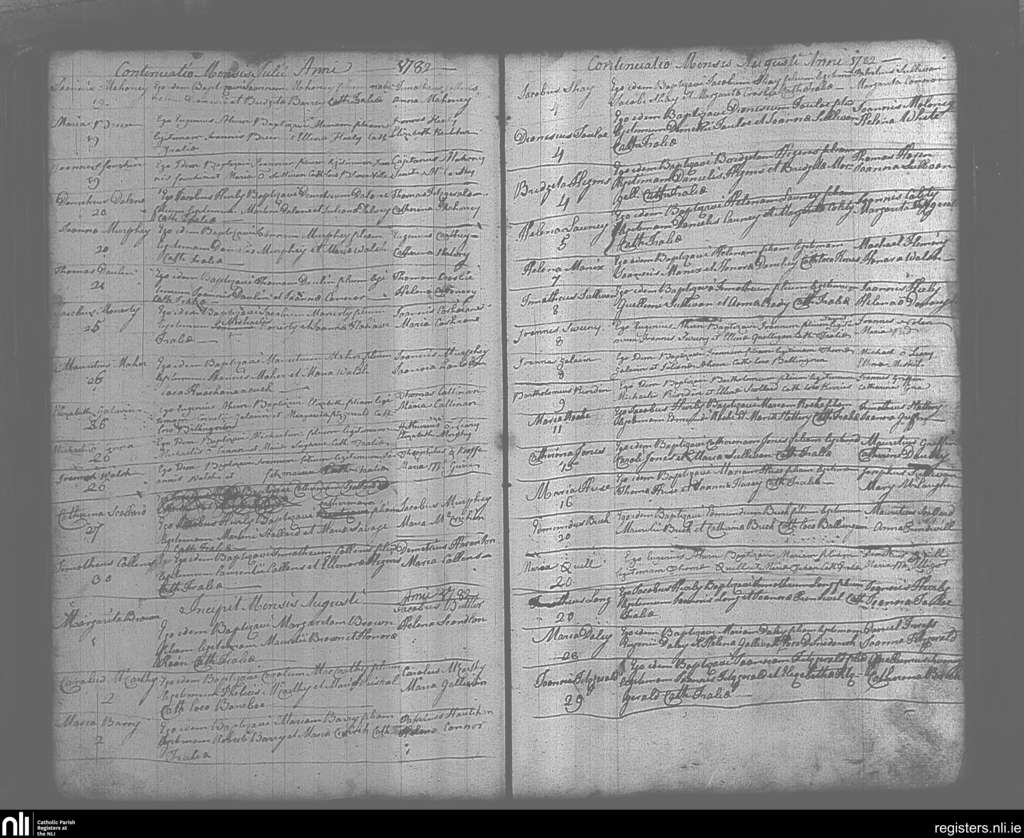 Tralee; County of Kerry; Diocese of Kerry. Baptisms, July 1782 to Aug. 1782