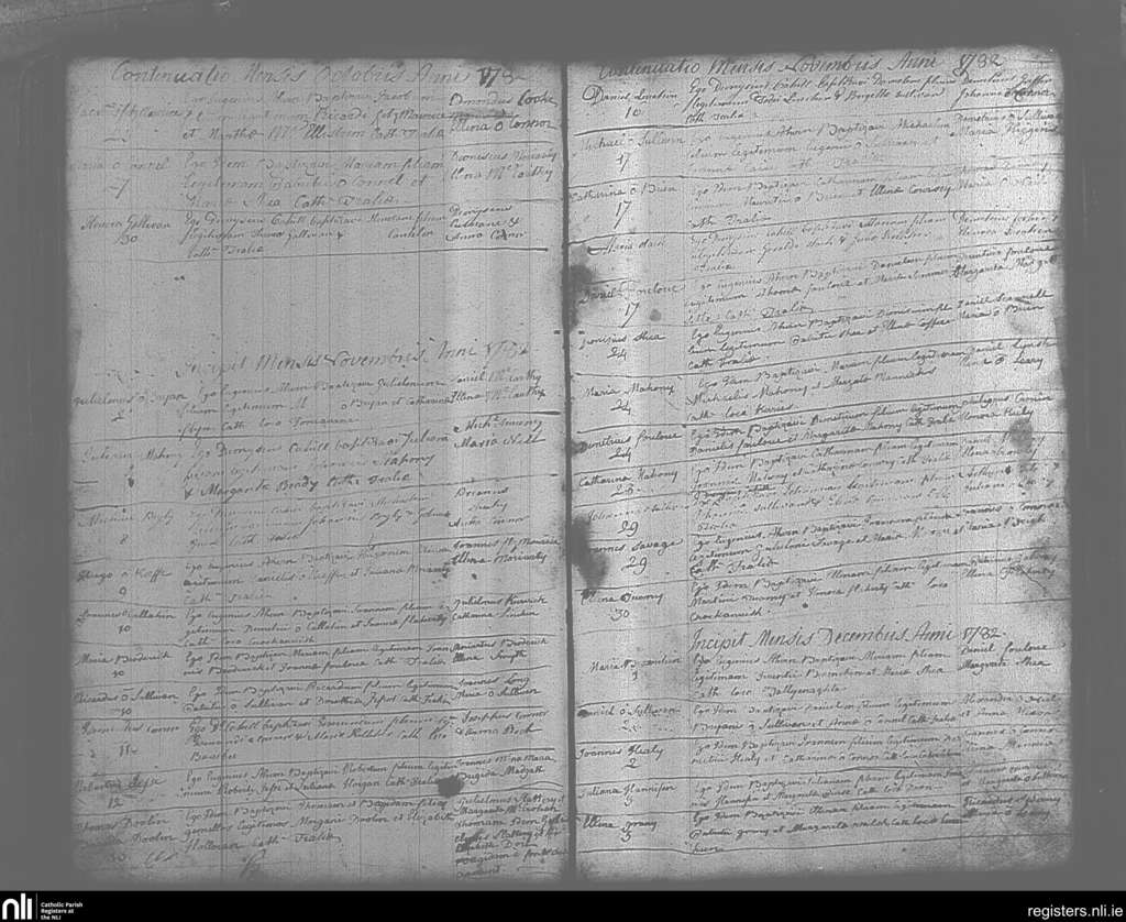 Tralee; County of Kerry; Diocese of Kerry. Baptisms, Oct. 1782 to Dec. 1782