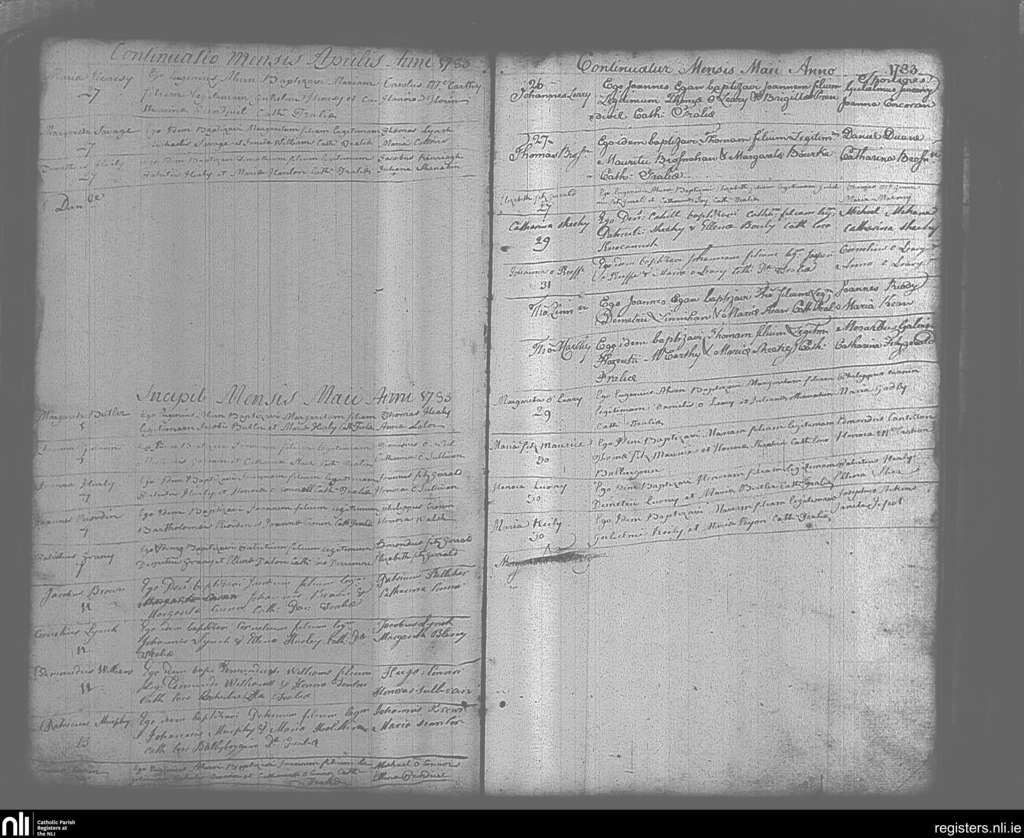 Tralee; County of Kerry; Diocese of Kerry. Baptisms, Apr. 1783 to May 1783