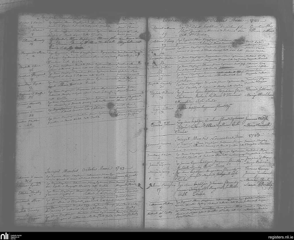 Tralee; County of Kerry; Diocese of Kerry. Baptisms, Sep. 1783 to Nov. 1783
