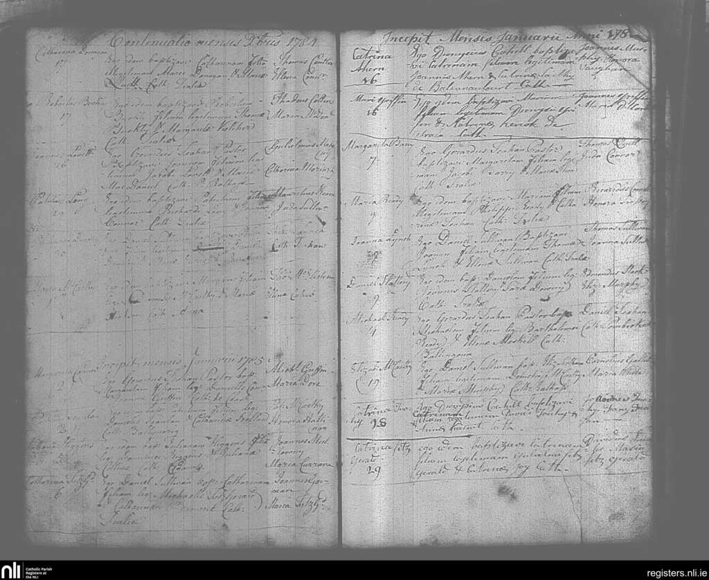 Tralee; County of Kerry; Diocese of Kerry. Baptisms, Dec. 1784 to Jan. 1785
