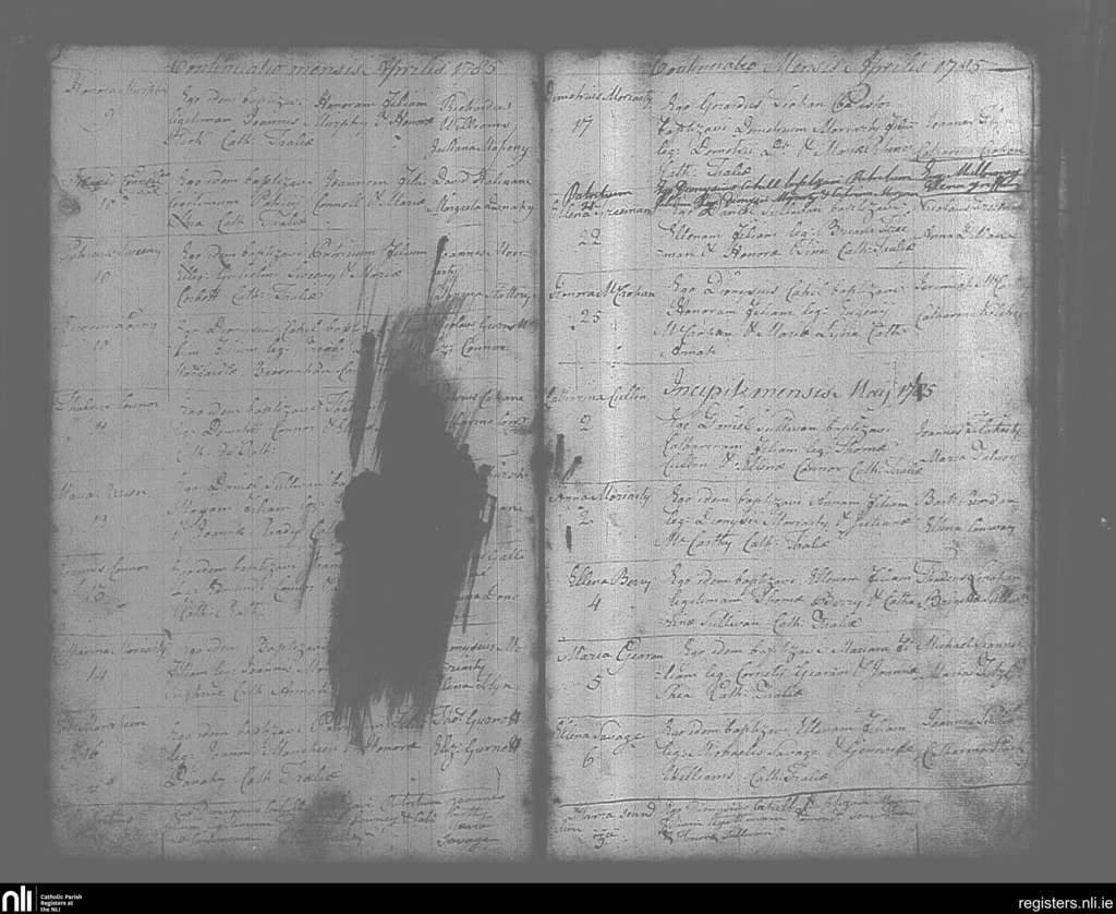 Tralee; County of Kerry; Diocese of Kerry. Baptisms, Apr. 1785 to May 1785