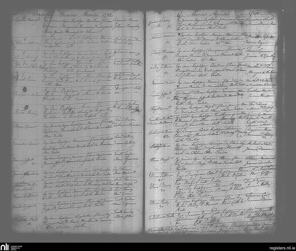 Tralee; County of Kerry; Diocese of Kerry. Baptisms, Mar. 1786 to Apr. 1786