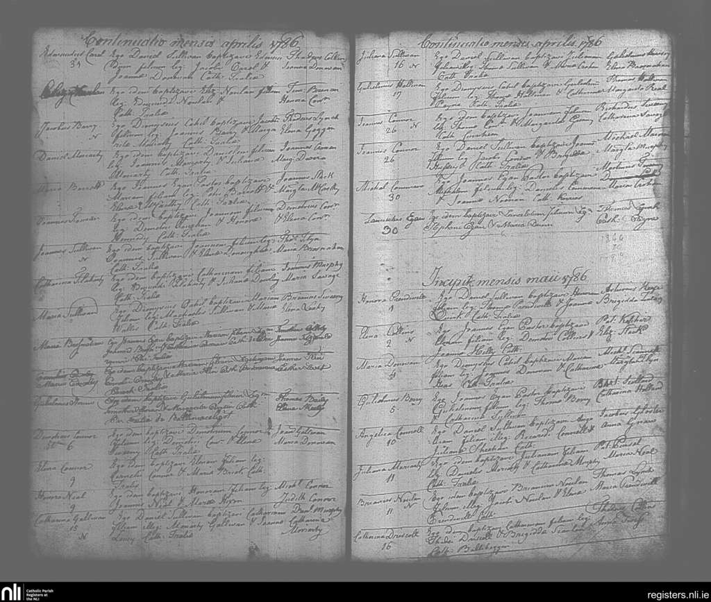 Tralee; County of Kerry; Diocese of Kerry. Baptisms, Apr. 1786 to May 1786