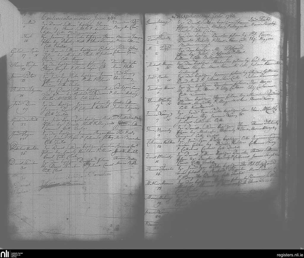 Tralee; County of Kerry; Diocese of Kerry. Baptisms, June 1786 to July 1786