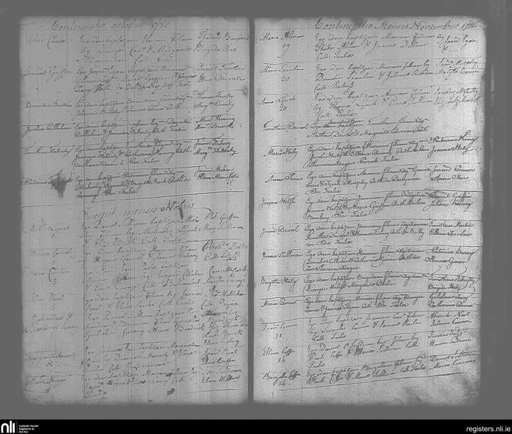 Tralee; County of Kerry; Diocese of Kerry. Baptisms, Oct. 1786 to Nov. 1786