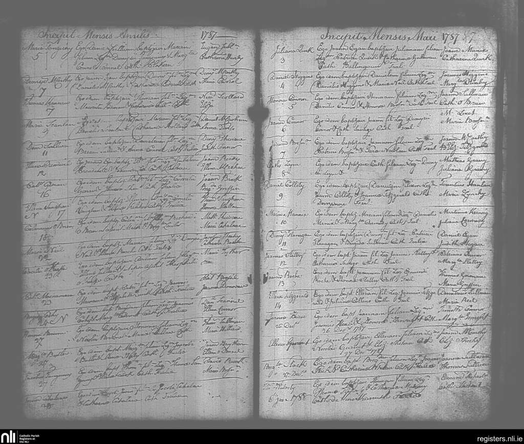 Tralee; County of Kerry; Diocese of Kerry. Baptisms, Apr. 1787 to May 1787