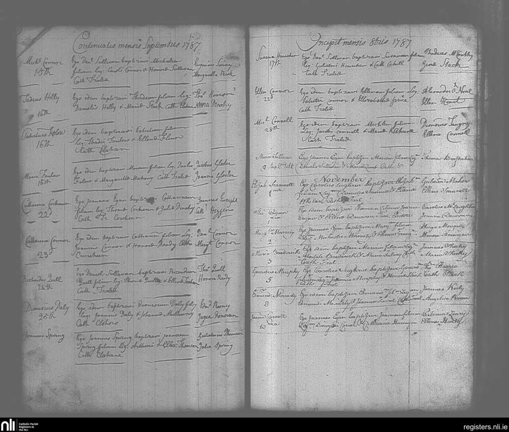 Tralee; County of Kerry; Diocese of Kerry. Baptisms, Sep. 1787 to Nov. 1787