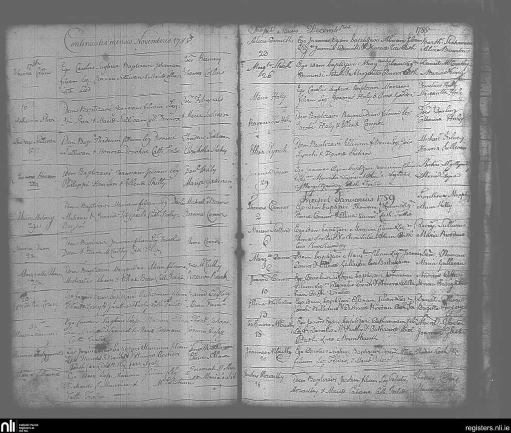 Tralee; County of Kerry; Diocese of Kerry. Baptisms, Nov. 1788 to Jan. 1789