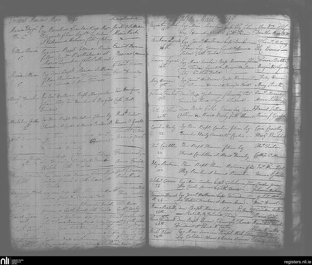 Tralee; County of Kerry; Diocese of Kerry. Baptisms, May 1790