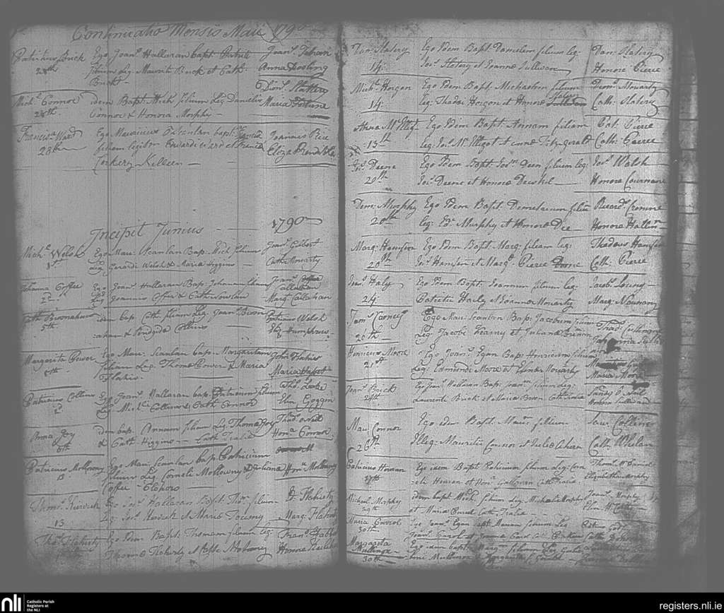 Tralee; County of Kerry; Diocese of Kerry. Baptisms, May 1790 to June 1790
