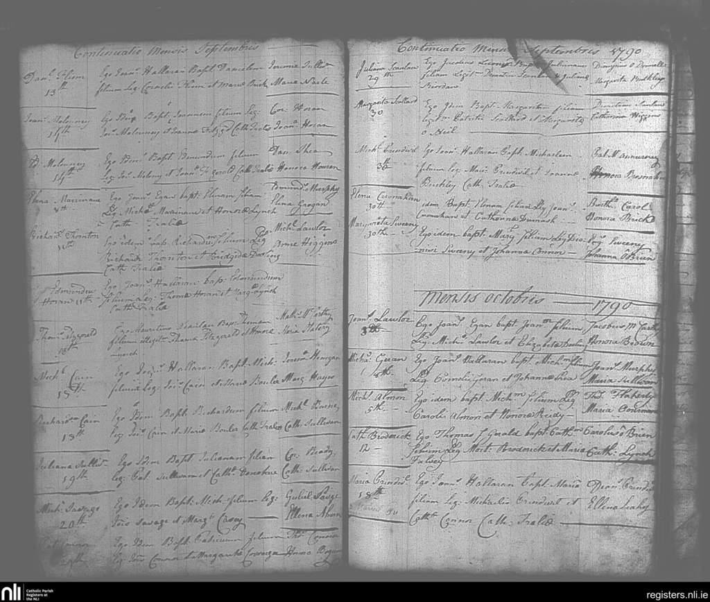 Tralee; County of Kerry; Diocese of Kerry. Baptisms, Sep. 1790 to Oct. 1790