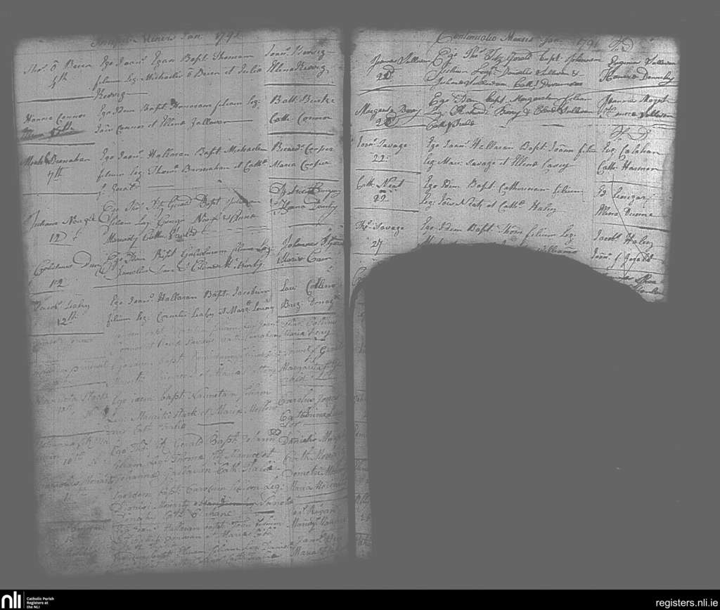 Tralee; County of Kerry; Diocese of Kerry. Baptisms, Jan. 1791