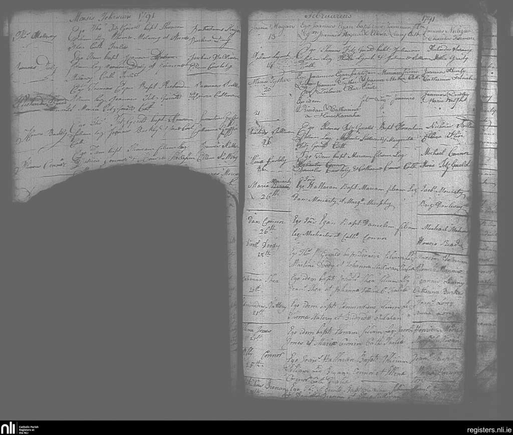 Tralee; County of Kerry; Diocese of Kerry. Baptisms, Feb. 1791