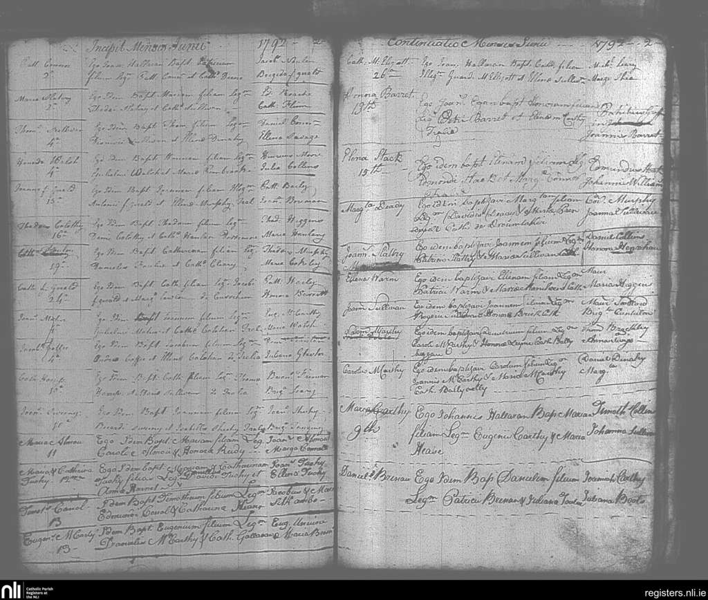 Tralee; County of Kerry; Diocese of Kerry. Baptisms, June 1792