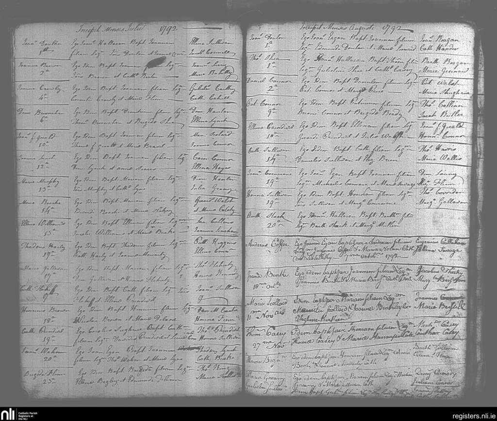 Tralee; County of Kerry; Diocese of Kerry. Baptisms, July 1792 to Nov. 1792
