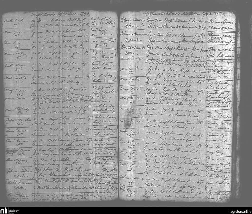 Tralee; County of Kerry; Diocese of Kerry. Baptisms, Aug. 1792 to Nov. 1792