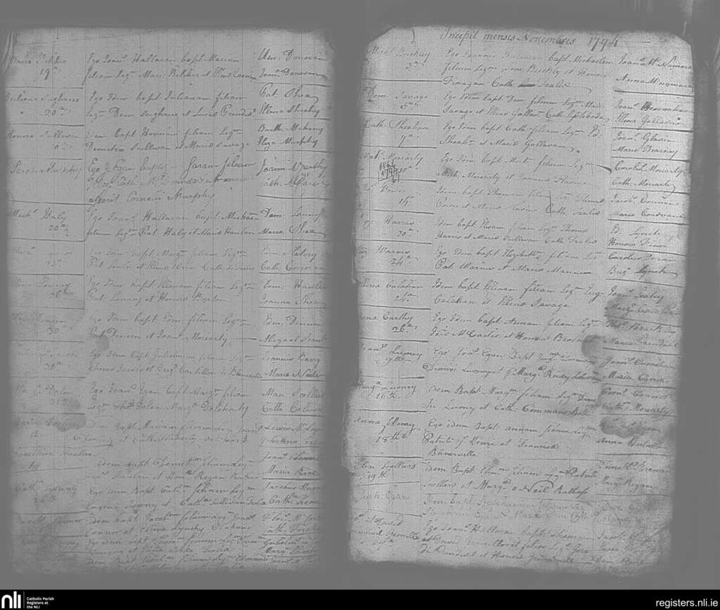 Tralee; County of Kerry; Diocese of Kerry. Baptisms, Oct. 1794 to Nov. 1794