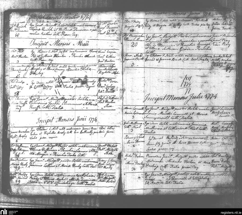 Tralee; County of Kerry; Diocese of Kerry. Marriages, Apr. 1774 to July 1774