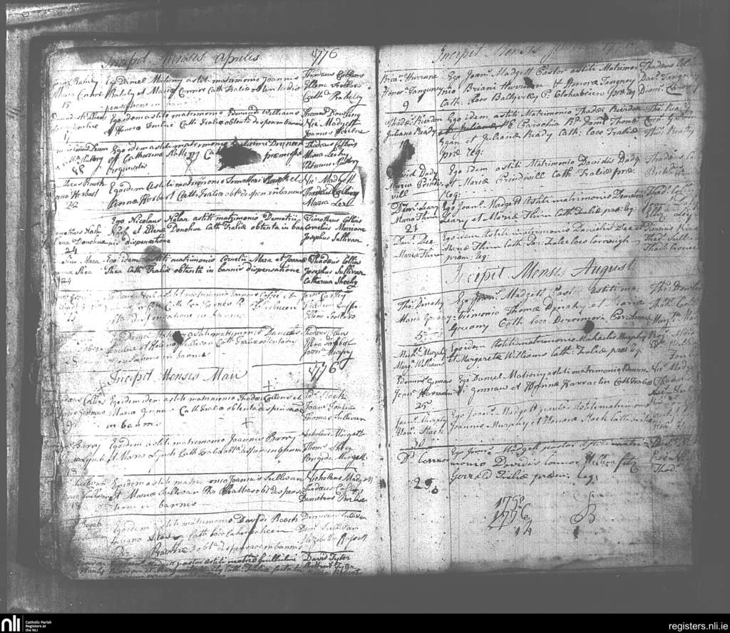 Tralee; County of Kerry; Diocese of Kerry. Marriages, Apr. 1776 to Aug. 1776
