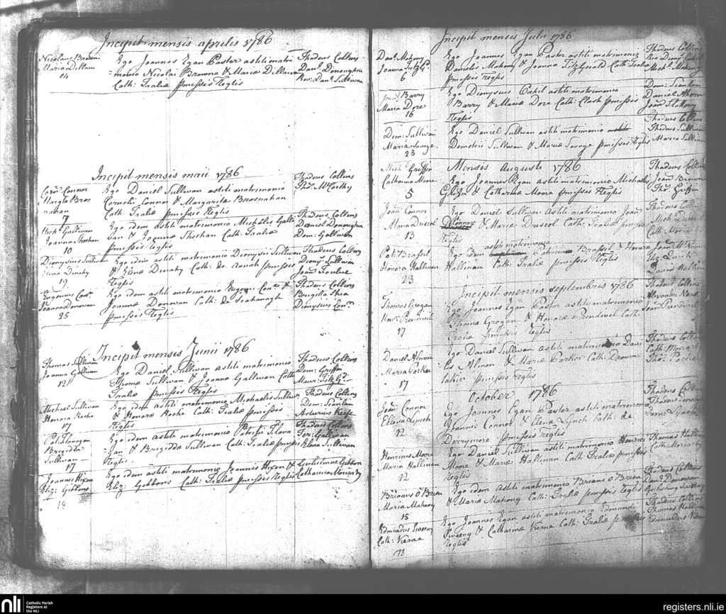 Tralee; County of Kerry; Diocese of Kerry. Marriages, Apr. 1786 to Oct. 1786