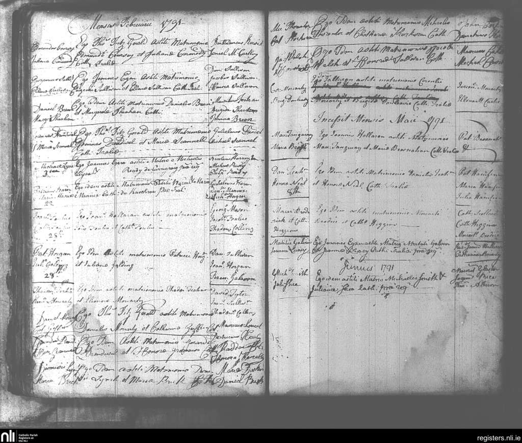 Tralee; County of Kerry; Diocese of Kerry. Marriages, Feb. 1791 to June 1791