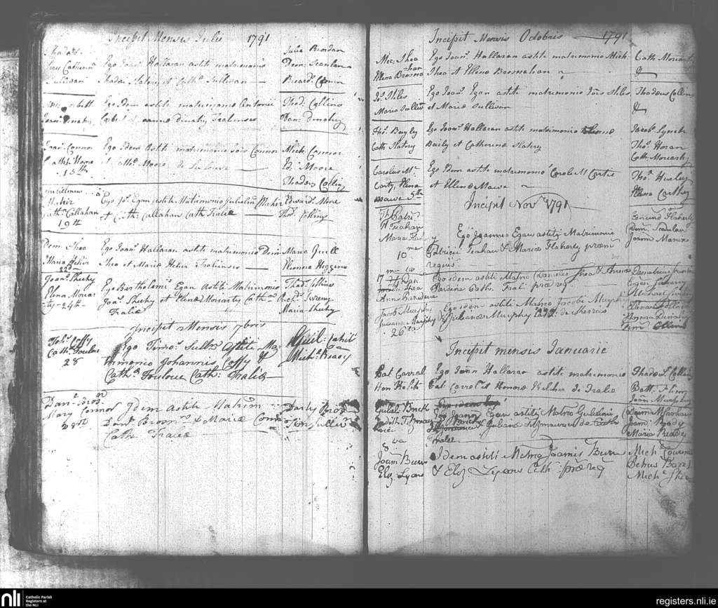 Tralee; County of Kerry; Diocese of Kerry. Marriages, July 1791 to Jan. 1792