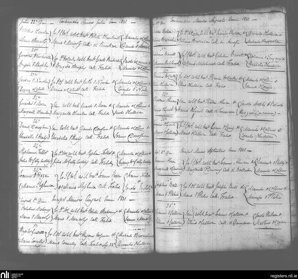Tralee; County of Kerry; Diocese of Kerry. Marriages, July 1831 to Sep. 1831