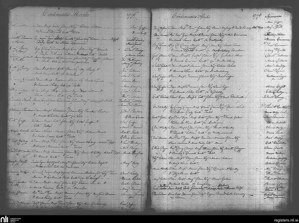 Tralee; County of Kerry; Diocese of Kerry. Baptisms, Mar. 1796 to Apr. 1796
