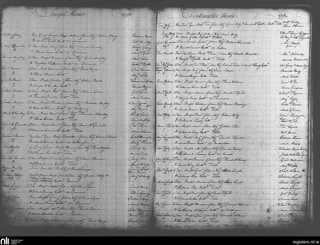 Tralee; County of Kerry; Diocese of Kerry. Baptisms, May 1796