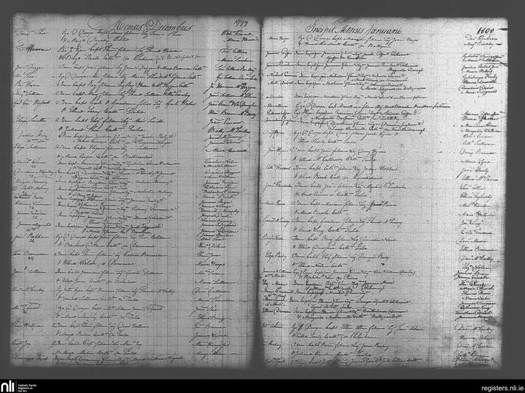 Tralee; County of Kerry; Diocese of Kerry. Baptisms, Dec. 1799 to Jan. 1800
