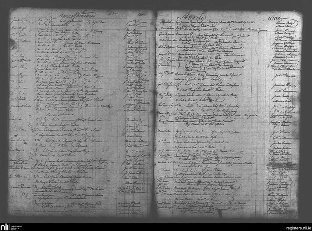 Tralee; County of Kerry; Diocese of Kerry. Baptisms, Jan. 1800 to Apr. 1800