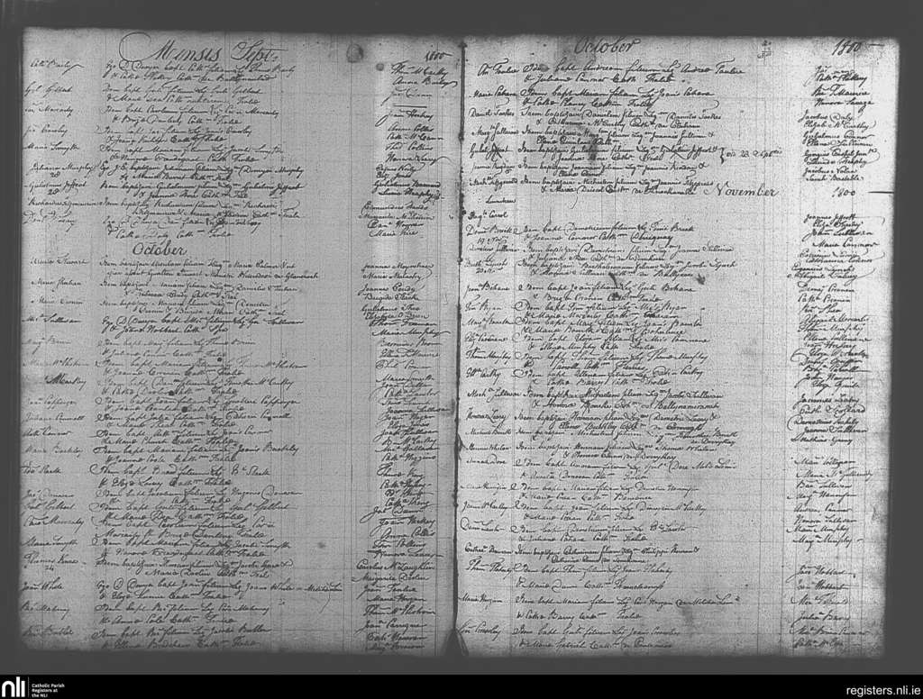 Tralee; County of Kerry; Diocese of Kerry. Baptisms, Sep. 1800 to Nov. 1800