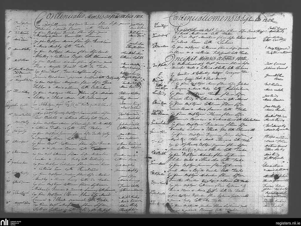 Tralee; County of Kerry; Diocese of Kerry. Baptisms, Sep. 1802 to Oct. 1802